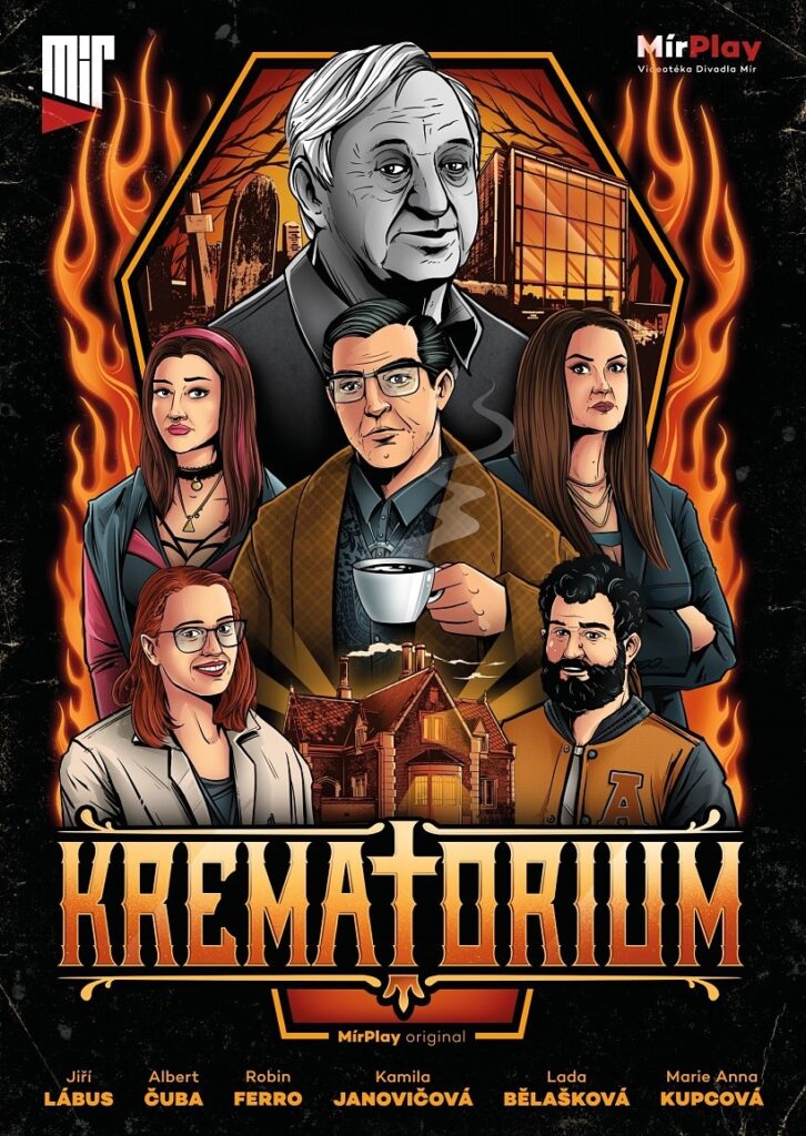 Přemůže Jiří Lábus vlastní smrt? Je novodobým mesiášem, nebo legendy zkrátka neumírají? Očekávaný komediální seriál Krematorium od Divadla Mír si nebere servítky, je plný černého humoru, ironie a nic mu není svaté, ani smrt… Šestidílný seriál vypráví příběh rodiny Záhorských a jejich rodinného krematoria. Člověk by řekl, že v takovém podniku bude docela mrtvo, Záhorským se však začnou dít zvláštní, mysteriózní (a nutno říct, že velmi vtipné) události, které překračují hranici života, smrti, a především černého humoru.